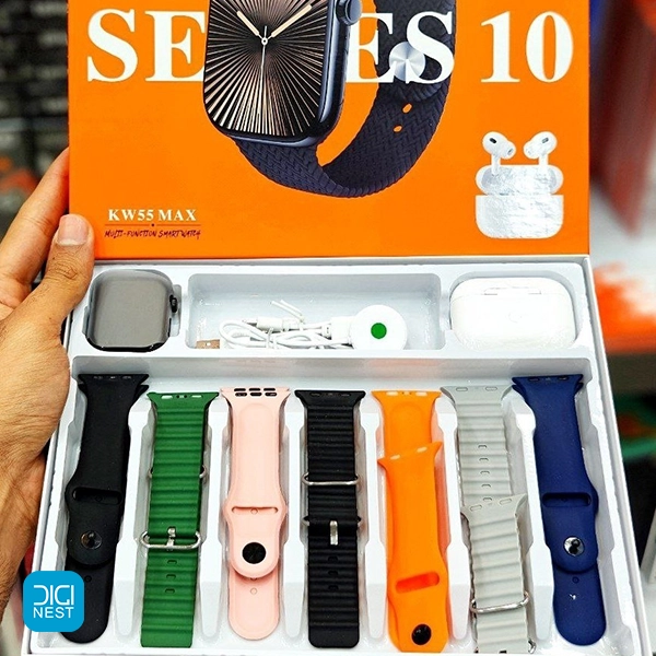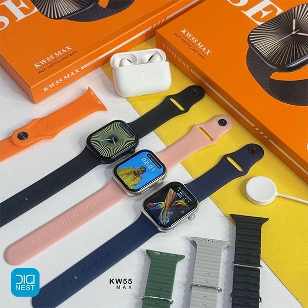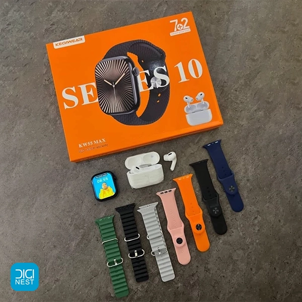 خرید و قیمت پک ساعت هوشمند طرح اپل و ایرپاد Keqiwear مدل KW55 Max با 7 بند جذاب
