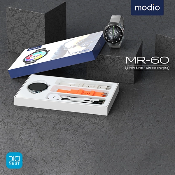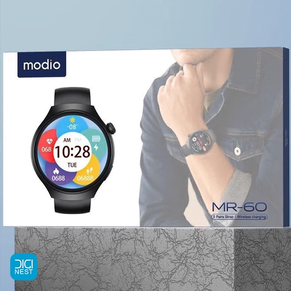 اگر به دنبال یک ساعت هوشمند با کیفیت ساخت بالا و طراحی مدرن و جذاب هستید، ساعت هوشمند مودیو مدل Modio Mr-60 می تواند یک انتخاب ایده آل برای شما باشد. اسمارت واچ مودیو مدل Modio Mr-60 در بسته بندی خود دارای 3 بند می باشد که شما می توانید به راحتی بند مورد علاقه خودتان را برای ساعت استفاده کنید.