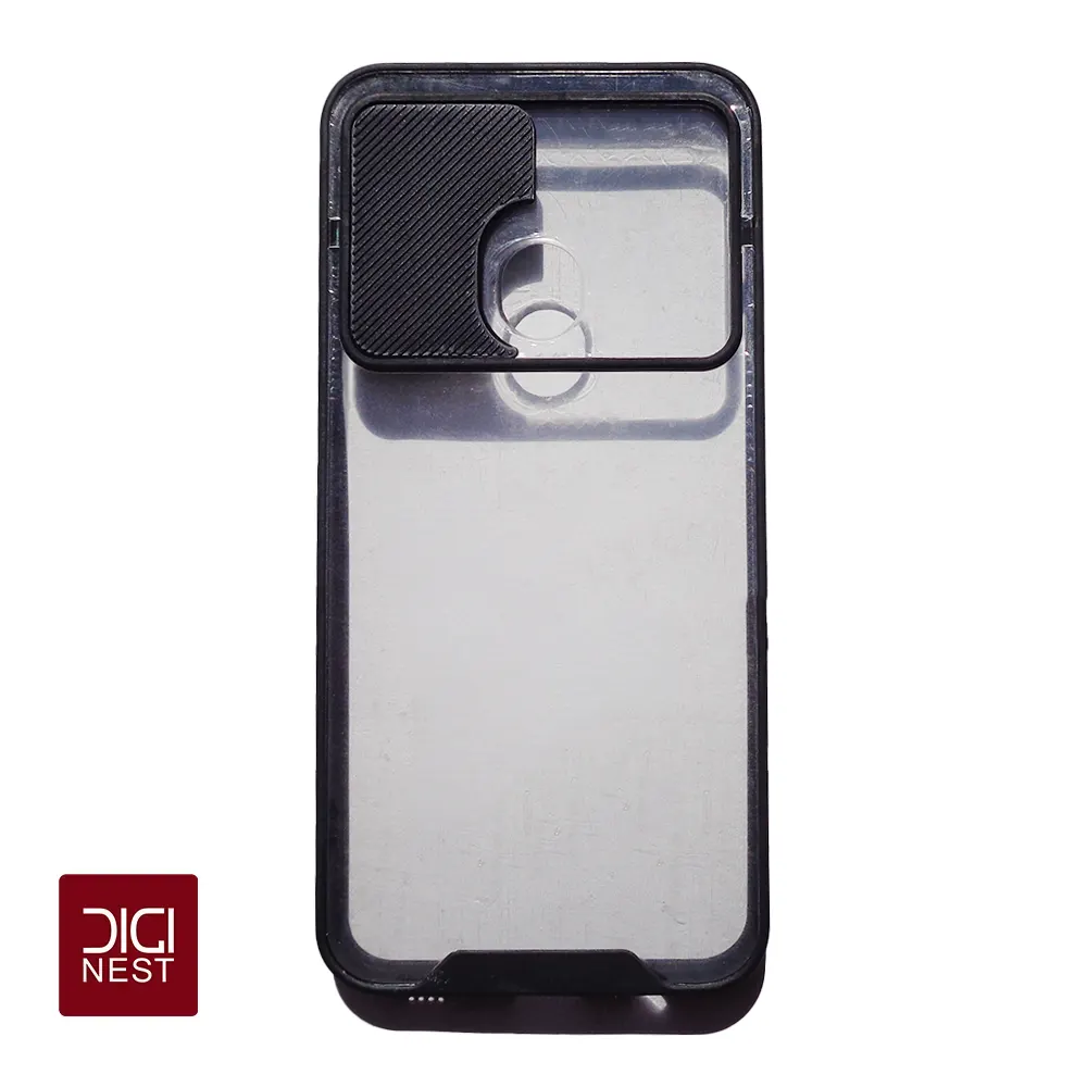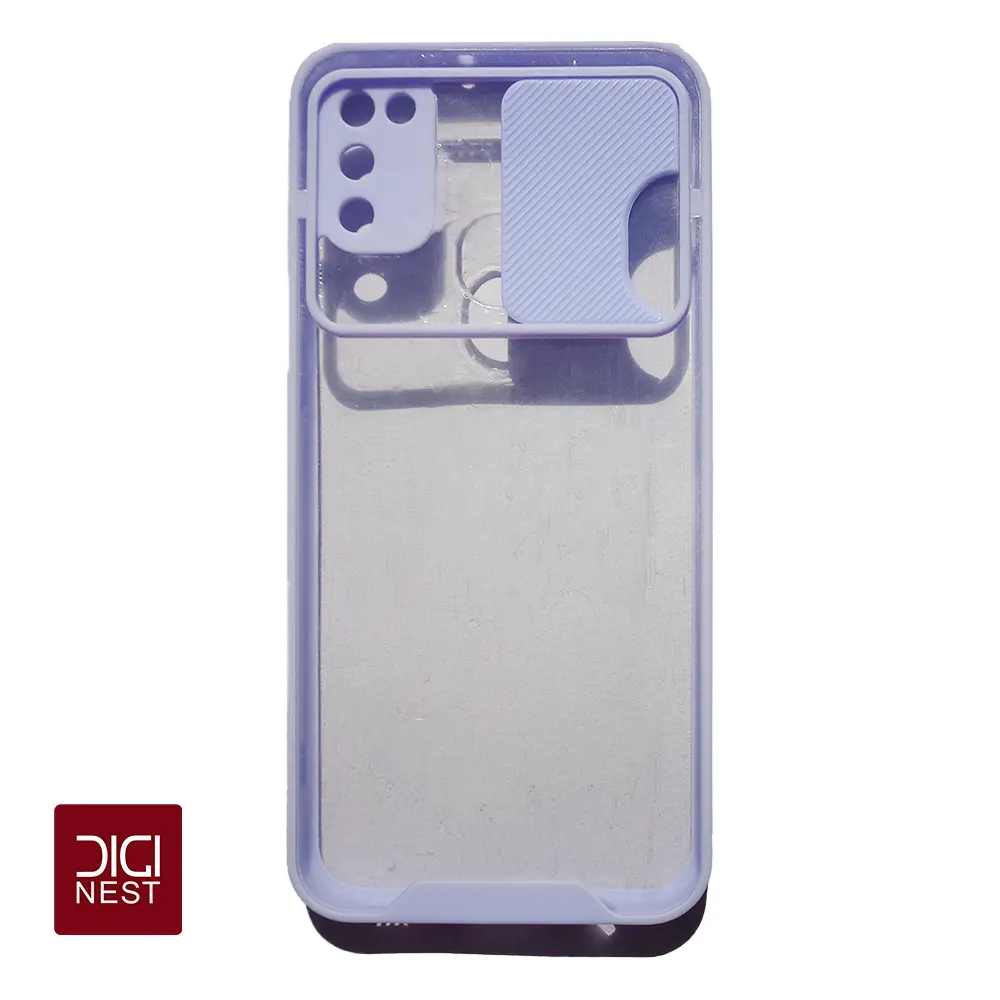 قاب دور سیلیکونی پشت شفاف محافظ لنزدار کشویی گوشی موبایل سامسونگ M21 که دور سیلیکونی از گوشی شما در برابر ضربه محافظت می کند و همچنین دارای محافظ لنز دوربین کشویی می باشد.
