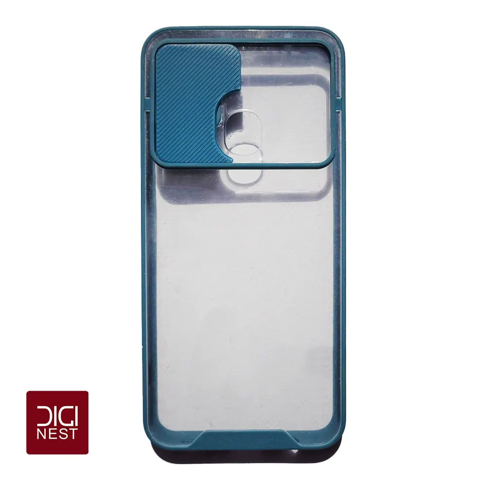 قاب دور سیلیکونی پشت شفاف محافظ لنزدار کشویی گوشی موبایل سامسونگ M31 که دور سیلیکونی از گوشی شما در برابر ضربه محافظت می کند و همچنین دارای محافظ لنز دوربین کشویی می باشد.