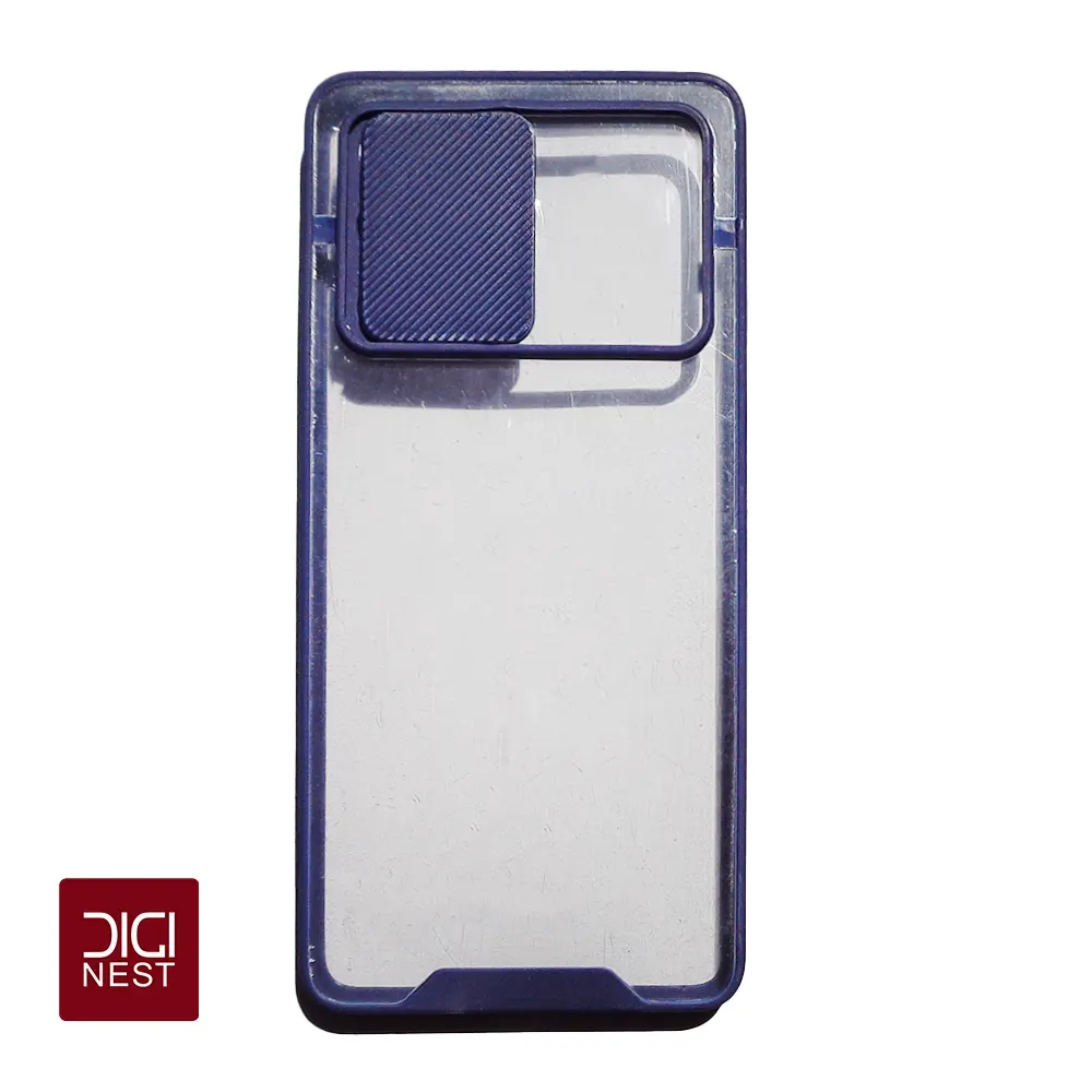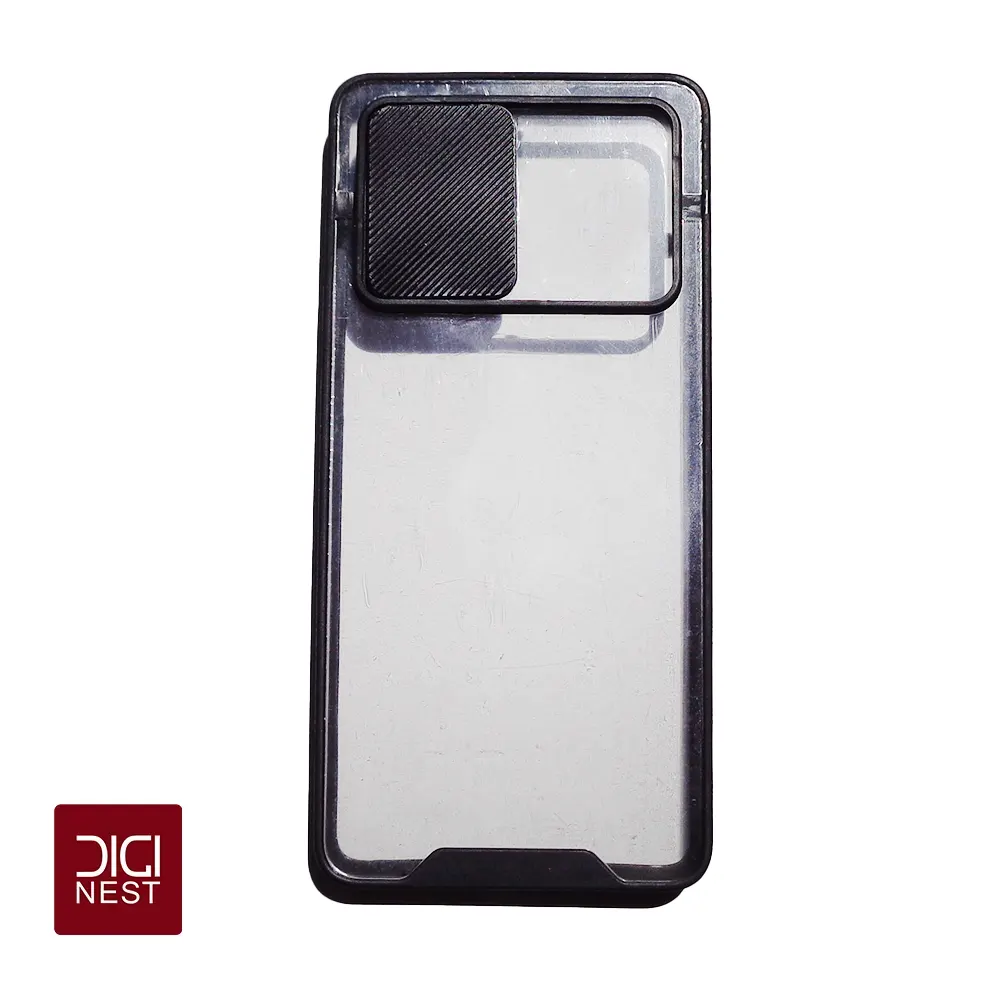 قاب دور سیلیکونی پشت شفاف محافظ لنزدار کشویی گوشی موبایل سامسونگ S20FE که دور سیلیکونی از گوشی شما در برابر ضربه محافظت می کند و همچنین دارای محافظ لنز دوربین کشویی می باشد.